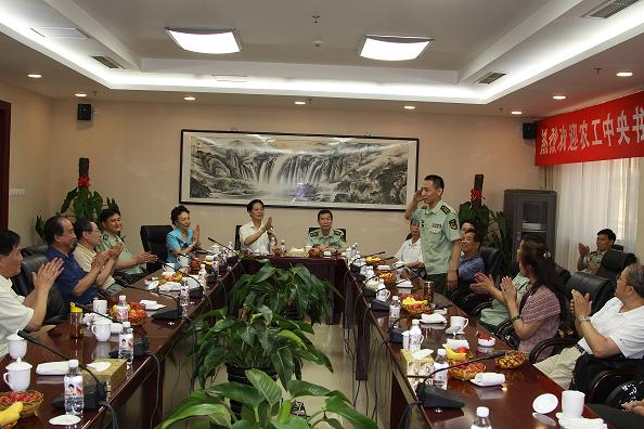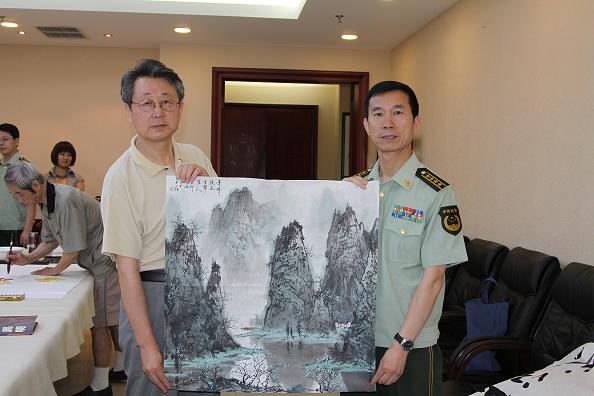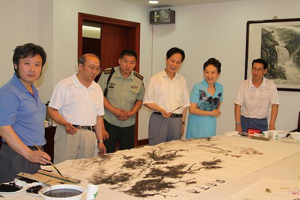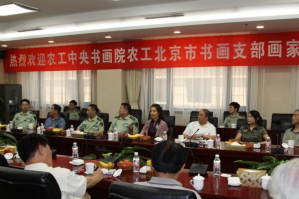 7月9日,在八一建军节到来之际,汪国新院长带领农工民主党中央书画院、农工北京市委书画支部艺术家们来到武青会议中心,慰问武警总部后勤部官兵。参加活动的有杨洪斌、王润、孙永舜、周振民、赵增福、郑桂兰、张政国、胡守庭、张永年、吴宝横、葛桂林、杜芳伦、马明、谷宝珍等。部队官兵对艺术家的到来表示最热烈的欢迎!并且与他们交流保卫祖国、建设祖国的感受。