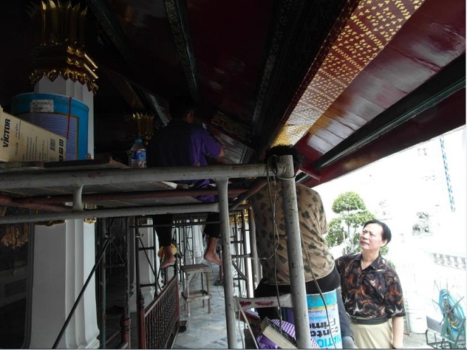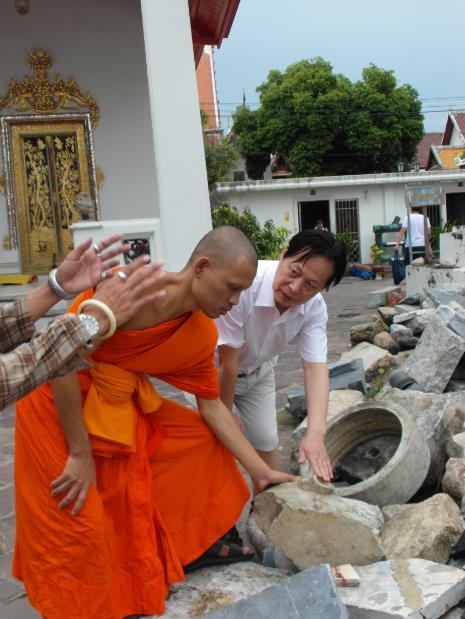 在本次考察交流期间,泰国玉佛寺特别邀请汪国新先生参考寺庙的修缮工作,并相互交换了宝贵意见。